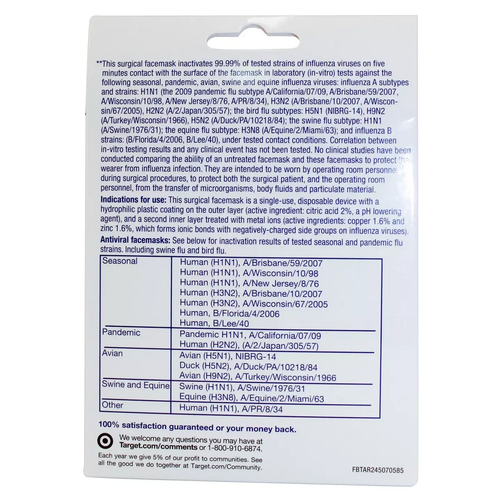Antiviral face masks inactivate 99.99% of tested influenza viruses on 5 minutes contact with the surface of the face mask.