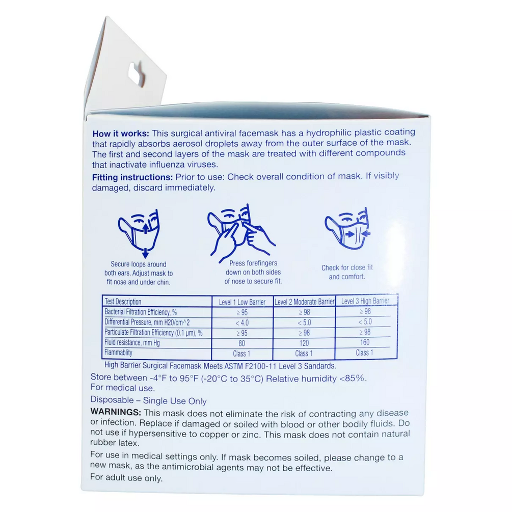 Meets ASTM F2100-07 standard: High Barrier surgical face mask.